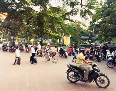 Phụ huynh đưa các con đi học
