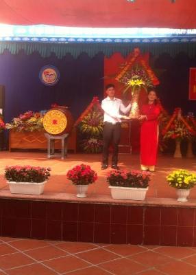 Đ/c Hoàng Thắng- Phó Bí thư thường trực Thị ủy Đông Triều cùng đoàn đại biểu đến chúc mừng và tặng hoa nhà trường