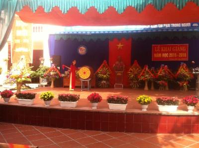Đ/c Vũ Thị Hồng- Hiệu trưởng nhà trường đánh trống khai giảng năm học 2015- 2016